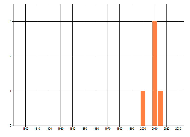 Het aantal atlasblokken (5x5 km) waarin de soort is gemeld binnen een periode van vijf jaar (vanaf 1980) of twintig jaar. Niet gecorrigeerd voor waarnemersinspanning en het aantal doorgegeven waarnemingen kan sterk variëren per periode, dus een trend in verspreiding kan hier niet direct uit worden afgelezen. Het opgegeven jaartal is het eerste jaar van de periode. Bron: gevalideerde waarnemingen uit de NDFF.