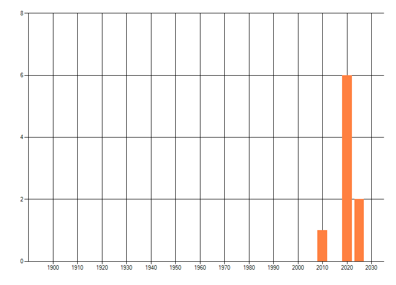 Het aantal atlasblokken (5x5 km) waarin de soort is gemeld binnen een periode van vijf jaar (vanaf 1980) of twintig jaar. Niet gecorrigeerd voor waarnemersinspanning en het aantal doorgegeven waarnemingen kan sterk variëren per periode, dus een trend in verspreiding kan hier niet direct uit worden afgelezen. Het opgegeven jaartal is het eerste jaar van de periode. Bron: gevalideerde waarnemingen uit de NDFF.
