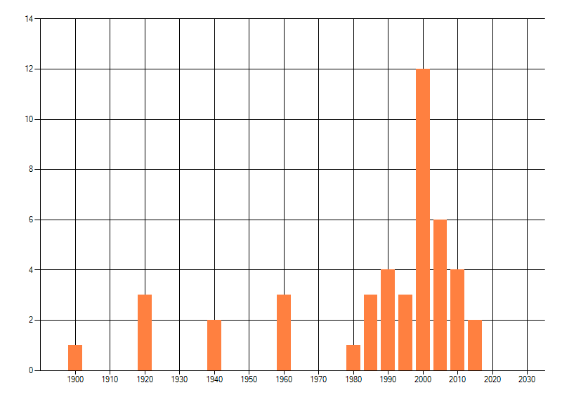Het aantal atlasblokken (5x5 km) waarin de soort is gemeld binnen een periode van vijf jaar (vanaf 1980) of twintig jaar. Niet gecorrigeerd voor waarnemersinspanning en het aantal doorgegeven waarnemingen kan sterk variëren per periode, dus een trend in verspreiding kan hier niet direct uit worden afgelezen. Het opgegeven jaartal is het eerste jaar van de periode. Bron: gevalideerde waarnemingen uit de NDFF.