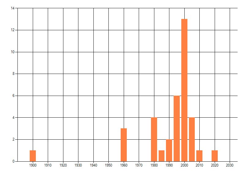 Het aantal atlasblokken (5x5 km) waarin de soort is gemeld binnen een periode van vijf jaar (vanaf 1980) of twintig jaar. Niet gecorrigeerd voor waarnemersinspanning en het aantal doorgegeven waarnemingen kan sterk variëren per periode, dus een trend in verspreiding kan hier niet direct uit worden afgelezen. Het opgegeven jaartal is het eerste jaar van de periode. Bron: gevalideerde waarnemingen uit de NDFF.
