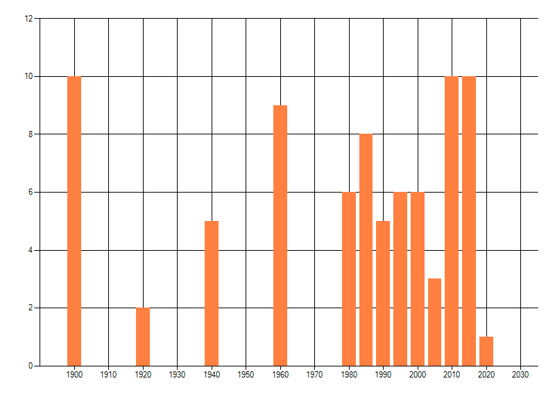 Het aantal atlasblokken (5x5 km) waarin de soort is gemeld binnen een periode van vijf jaar (vanaf 1980) of twintig jaar. Niet gecorrigeerd voor waarnemersinspanning en het aantal doorgegeven waarnemingen kan sterk variëren per periode, dus een trend in verspreiding kan hier niet direct uit worden afgelezen. Het opgegeven jaartal is het eerste jaar van de periode. Bron: gevalideerde waarnemingen uit de NDFF.