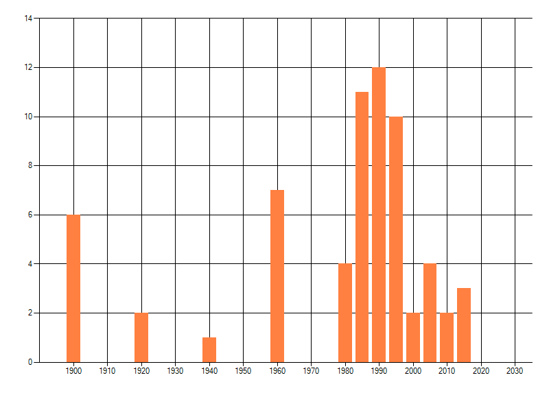 Het aantal atlasblokken (5x5 km) waarin de soort is gemeld binnen een periode van vijf jaar (vanaf 1980) of twintig jaar. Niet gecorrigeerd voor waarnemersinspanning en het aantal doorgegeven waarnemingen kan sterk variëren per periode, dus een trend in verspreiding kan hier niet direct uit worden afgelezen. Het opgegeven jaartal is het eerste jaar van de periode. Bron: gevalideerde waarnemingen uit de NDFF.