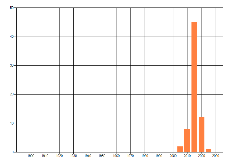 Het aantal atlasblokken (5x5 km) waarin de soort is gemeld binnen een periode van vijf jaar (vanaf 1980) of twintig jaar. Niet gecorrigeerd voor waarnemersinspanning en het aantal doorgegeven waarnemingen kan sterk variëren per periode, dus een trend in verspreiding kan hier niet direct uit worden afgelezen. Het opgegeven jaartal is het eerste jaar van de periode. Bron: gevalideerde waarnemingen uit de NDFF.