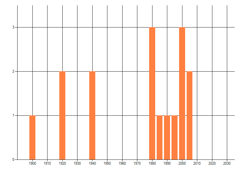 Het aantal atlasblokken (5x5 km) waarin de soort is gemeld binnen een periode van vijf jaar (vanaf 1980) of twintig jaar. Niet gecorrigeerd voor waarnemersinspanning en het aantal doorgegeven waarnemingen kan sterk variëren per periode, dus een trend in verspreiding kan hier niet direct uit worden afgelezen. Het opgegeven jaartal is het eerste jaar van de periode. Bron: gevalideerde waarnemingen uit de NDFF.