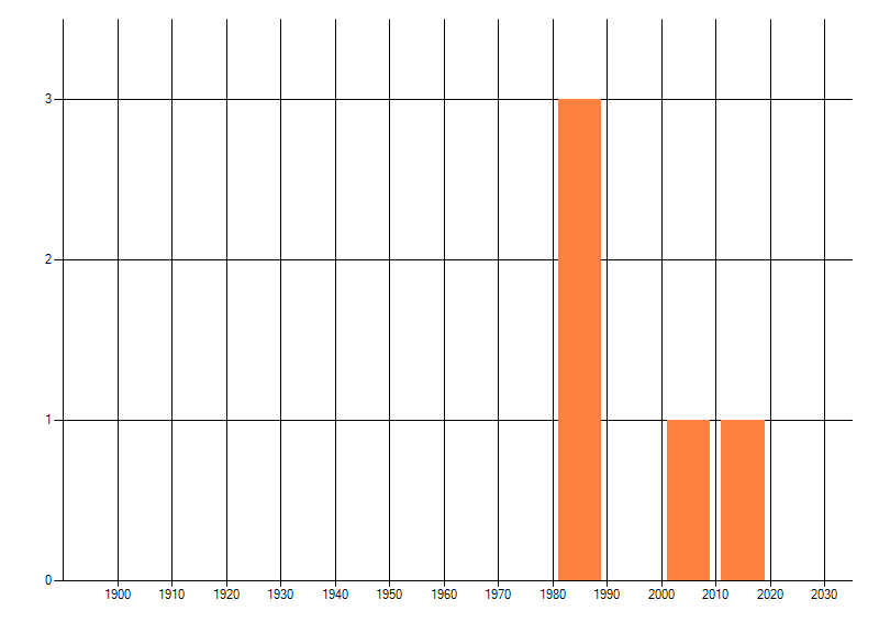 Het aantal atlasblokken (5x5 km) waarin de soort is gemeld binnen een periode van vijf jaar (vanaf 1980) of twintig jaar. Niet gecorrigeerd voor waarnemersinspanning en het aantal doorgegeven waarnemingen kan sterk variëren per periode, dus een trend in verspreiding kan hier niet direct uit worden afgelezen. Het opgegeven jaartal is het eerste jaar van de periode. Bron: gevalideerde waarnemingen uit de NDFF.