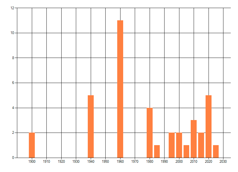 Het aantal atlasblokken (5x5 km) waarin de soort is gemeld binnen een periode van vijf jaar (vanaf 1980) of twintig jaar. Niet gecorrigeerd voor waarnemersinspanning en het aantal doorgegeven waarnemingen kan sterk variëren per periode, dus een trend in verspreiding kan hier niet direct uit worden afgelezen. Het opgegeven jaartal is het eerste jaar van de periode. Bron: gevalideerde waarnemingen uit de NDFF.