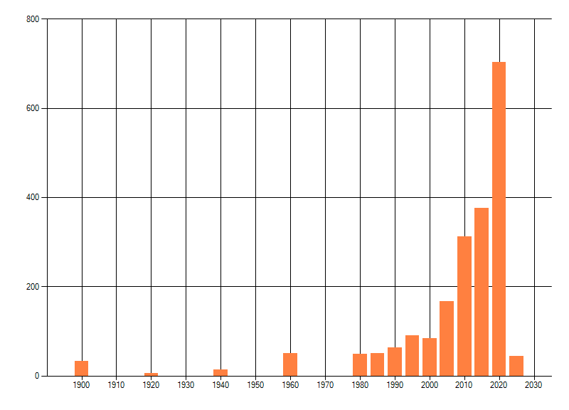 Het aantal atlasblokken (5x5 km) waarin de soort is gemeld binnen een periode van vijf jaar (vanaf 1980) of twintig jaar. Niet gecorrigeerd voor waarnemersinspanning en het aantal doorgegeven waarnemingen kan sterk variëren per periode, dus een trend in verspreiding kan hier niet direct uit worden afgelezen. Het opgegeven jaartal is het eerste jaar van de periode. Bron: gevalideerde waarnemingen uit de NDFF.