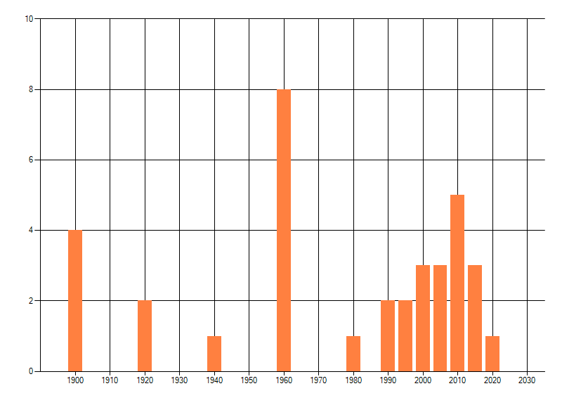 Het aantal atlasblokken (5x5 km) waarin de soort is gemeld binnen een periode van vijf jaar (vanaf 1980) of twintig jaar. Niet gecorrigeerd voor waarnemersinspanning en het aantal doorgegeven waarnemingen kan sterk variëren per periode, dus een trend in verspreiding kan hier niet direct uit worden afgelezen. Het opgegeven jaartal is het eerste jaar van de periode. Bron: gevalideerde waarnemingen uit de NDFF.
