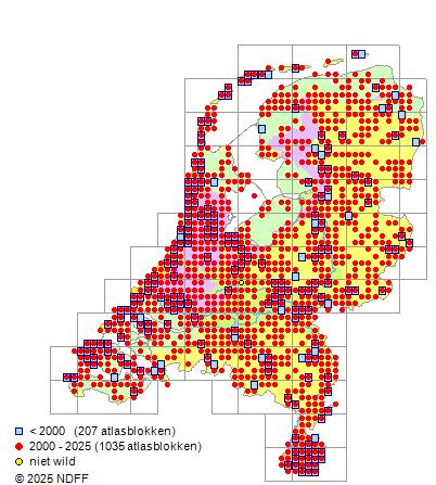 Bron: FLORON - Gemodelleerd op basis van waarnemingen uit de NDFF voor de periode 2000-2021.