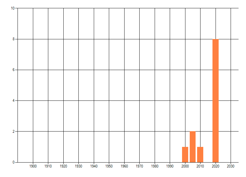 Het aantal atlasblokken (5x5 km) waarin de soort is gemeld binnen een periode van vijf jaar (vanaf 1980) of twintig jaar. Niet gecorrigeerd voor waarnemersinspanning en het aantal doorgegeven waarnemingen kan sterk variëren per periode, dus een trend in verspreiding kan hier niet direct uit worden afgelezen. Het opgegeven jaartal is het eerste jaar van de periode. Bron: gevalideerde waarnemingen uit de NDFF.