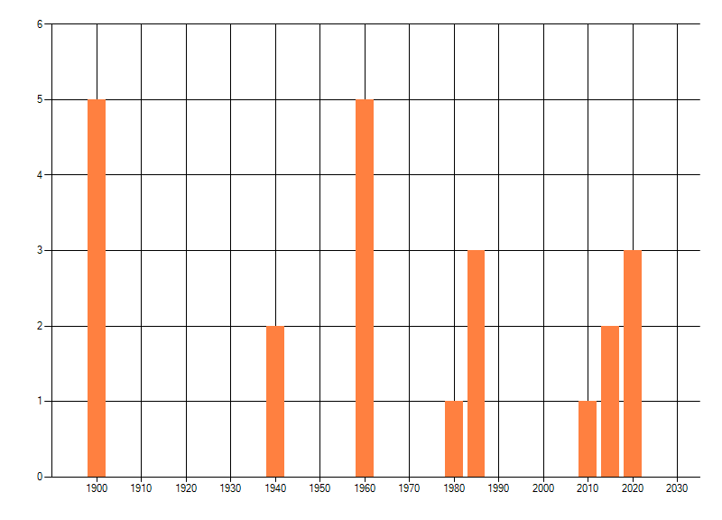 Het aantal atlasblokken (5x5 km) waarin de soort is gemeld binnen een periode van vijf jaar (vanaf 1980) of twintig jaar. Niet gecorrigeerd voor waarnemersinspanning en het aantal doorgegeven waarnemingen kan sterk variëren per periode, dus een trend in verspreiding kan hier niet direct uit worden afgelezen. Het opgegeven jaartal is het eerste jaar van de periode. Bron: gevalideerde waarnemingen uit de NDFF.