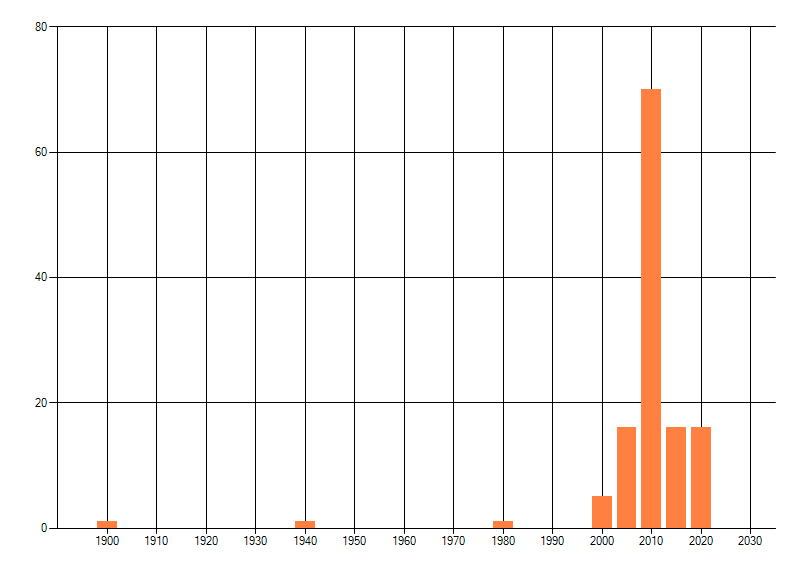 Het aantal atlasblokken (5x5 km) waarin de soort is gemeld binnen een periode van vijf jaar (vanaf 1980) of twintig jaar. Niet gecorrigeerd voor waarnemersinspanning en het aantal doorgegeven waarnemingen kan sterk variëren per periode, dus een trend in verspreiding kan hier niet direct uit worden afgelezen. Het opgegeven jaartal is het eerste jaar van de periode. Bron: gevalideerde waarnemingen uit de NDFF.