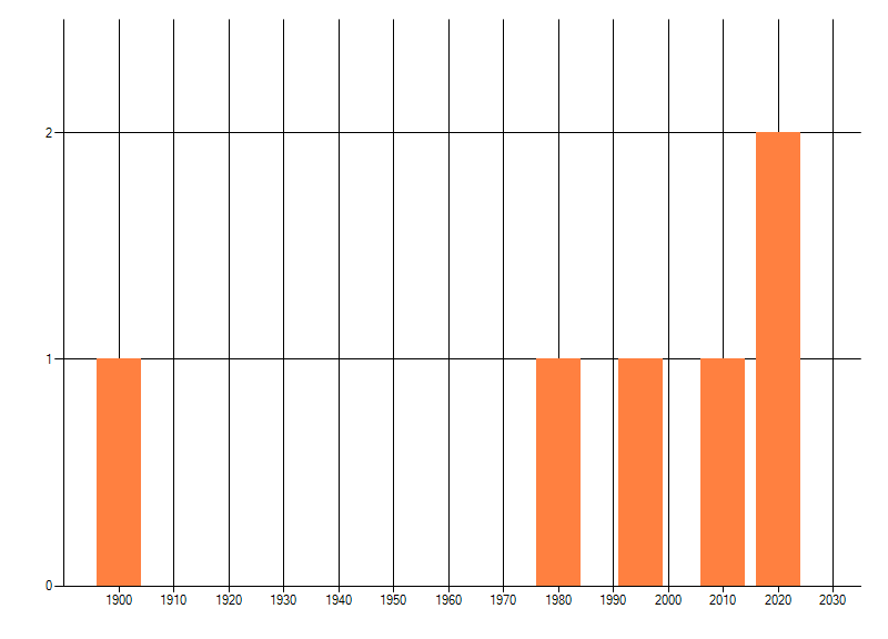 Het aantal atlasblokken (5x5 km) waarin de soort is gemeld binnen een periode van vijf jaar (vanaf 1980) of twintig jaar. Niet gecorrigeerd voor waarnemersinspanning en het aantal doorgegeven waarnemingen kan sterk variëren per periode, dus een trend in verspreiding kan hier niet direct uit worden afgelezen. Het opgegeven jaartal is het eerste jaar van de periode. Bron: gevalideerde waarnemingen uit de NDFF.