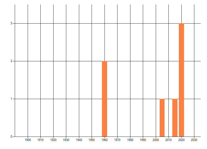 Het aantal atlasblokken (5x5 km) waarin de soort is gemeld binnen een periode van vijf jaar (vanaf 1980) of twintig jaar. Niet gecorrigeerd voor waarnemersinspanning en het aantal doorgegeven waarnemingen kan sterk variëren per periode, dus een trend in verspreiding kan hier niet direct uit worden afgelezen. Het opgegeven jaartal is het eerste jaar van de periode. Bron: gevalideerde waarnemingen uit de NDFF.