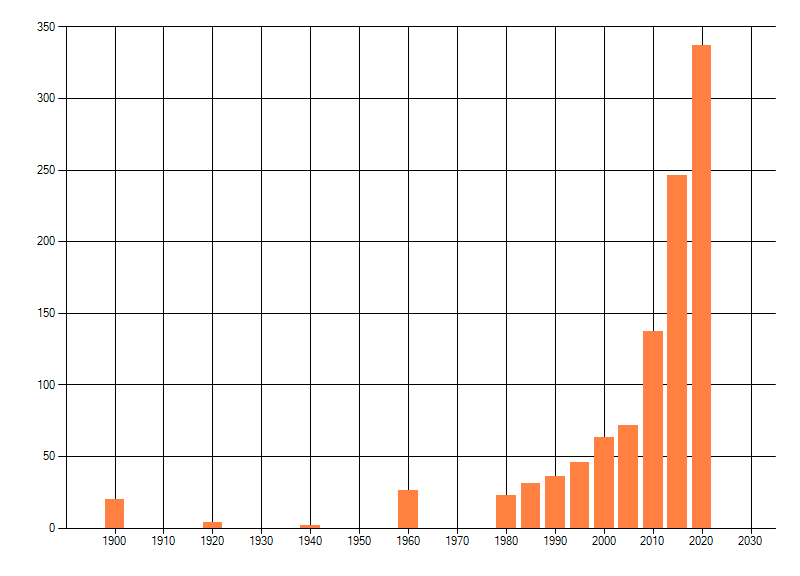 Het aantal atlasblokken (5x5 km) waarin de soort is gemeld binnen een periode van vijf jaar (vanaf 1980) of twintig jaar. Niet gecorrigeerd voor waarnemersinspanning en het aantal doorgegeven waarnemingen kan sterk variëren per periode, dus een trend in verspreiding kan hier niet direct uit worden afgelezen. Het opgegeven jaartal is het eerste jaar van de periode. Bron: gevalideerde waarnemingen uit de NDFF.