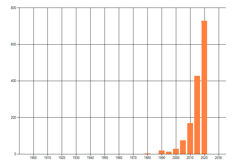 Het aantal atlasblokken (5x5 km) waarin de soort is gemeld binnen een periode van vijf jaar (vanaf 1980) of twintig jaar. Niet gecorrigeerd voor waarnemersinspanning en het aantal doorgegeven waarnemingen kan sterk variëren per periode, dus een trend in verspreiding kan hier niet direct uit worden afgelezen. Het opgegeven jaartal is het eerste jaar van de periode. Bron: gevalideerde waarnemingen uit de NDFF.