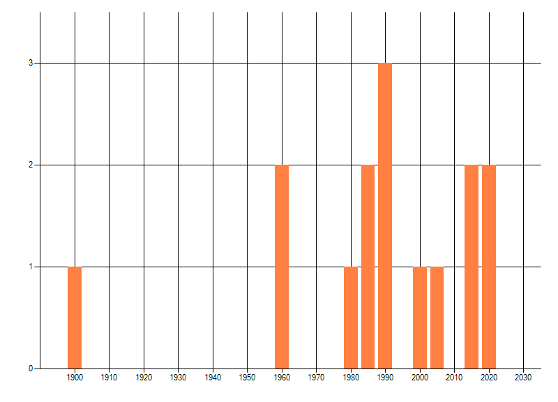 Het aantal atlasblokken (5x5 km) waarin de soort is gemeld binnen een periode van vijf jaar (vanaf 1980) of twintig jaar. Niet gecorrigeerd voor waarnemersinspanning en het aantal doorgegeven waarnemingen kan sterk variëren per periode, dus een trend in verspreiding kan hier niet direct uit worden afgelezen. Het opgegeven jaartal is het eerste jaar van de periode. Bron: gevalideerde waarnemingen uit de NDFF.