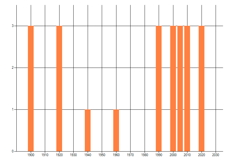 Het aantal atlasblokken (5x5 km) waarin de soort is gemeld binnen een periode van vijf jaar (vanaf 1980) of twintig jaar. Niet gecorrigeerd voor waarnemersinspanning en het aantal doorgegeven waarnemingen kan sterk variëren per periode, dus een trend in verspreiding kan hier niet direct uit worden afgelezen. Het opgegeven jaartal is het eerste jaar van de periode. Bron: gevalideerde waarnemingen uit de NDFF.
