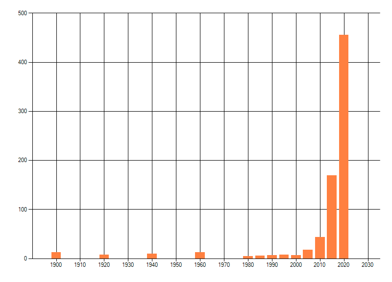Het aantal atlasblokken (5x5 km) waarin de soort is gemeld binnen een periode van vijf jaar (vanaf 1980) of twintig jaar. Niet gecorrigeerd voor waarnemersinspanning en het aantal doorgegeven waarnemingen kan sterk variëren per periode, dus een trend in verspreiding kan hier niet direct uit worden afgelezen. Het opgegeven jaartal is het eerste jaar van de periode. Bron: gevalideerde waarnemingen uit de NDFF.