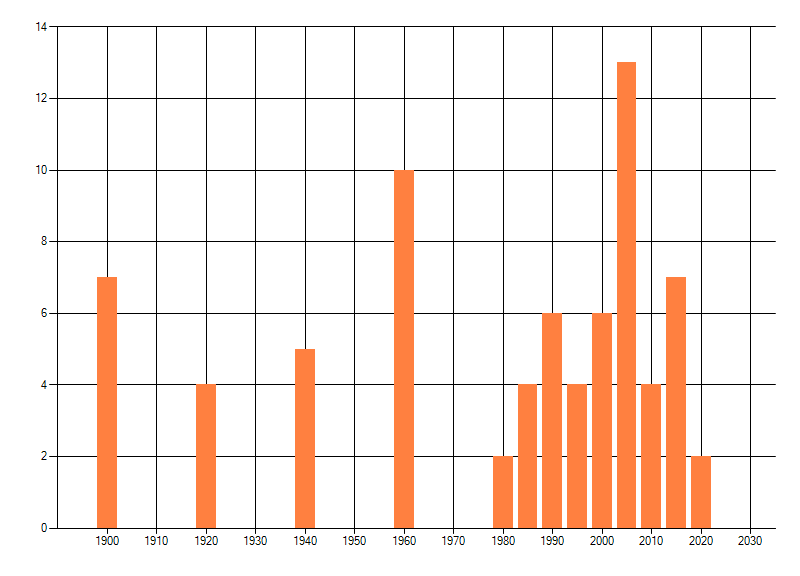 Het aantal atlasblokken (5x5 km) waarin de soort is gemeld binnen een periode van vijf jaar (vanaf 1980) of twintig jaar. Niet gecorrigeerd voor waarnemersinspanning en het aantal doorgegeven waarnemingen kan sterk variëren per periode, dus een trend in verspreiding kan hier niet direct uit worden afgelezen. Het opgegeven jaartal is het eerste jaar van de periode. Bron: gevalideerde waarnemingen uit de NDFF.