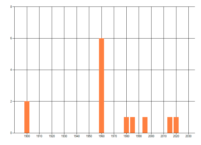 Het aantal atlasblokken (5x5 km) waarin de soort is gemeld binnen een periode van vijf jaar (vanaf 1980) of twintig jaar. Niet gecorrigeerd voor waarnemersinspanning en het aantal doorgegeven waarnemingen kan sterk variëren per periode, dus een trend in verspreiding kan hier niet direct uit worden afgelezen. Het opgegeven jaartal is het eerste jaar van de periode. Bron: gevalideerde waarnemingen uit de NDFF.