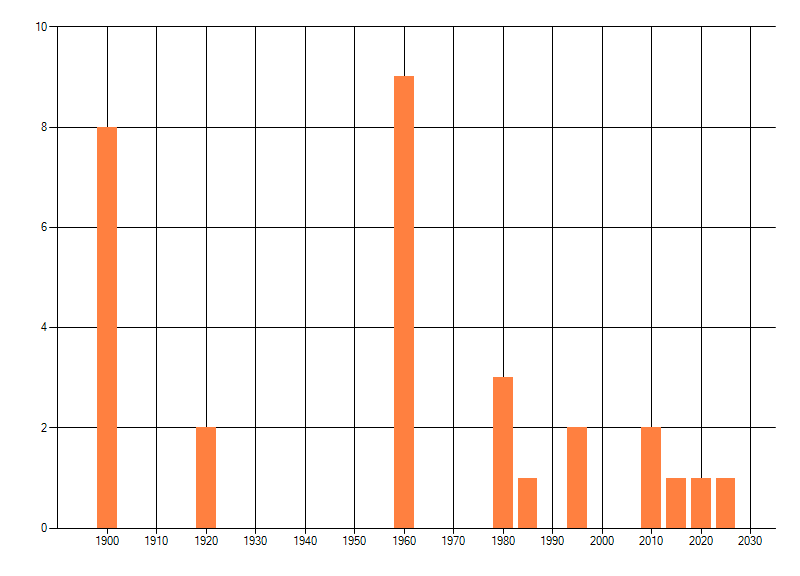 Het aantal atlasblokken (5x5 km) waarin de soort is gemeld binnen een periode van vijf jaar (vanaf 1980) of twintig jaar. Niet gecorrigeerd voor waarnemersinspanning en het aantal doorgegeven waarnemingen kan sterk variëren per periode, dus een trend in verspreiding kan hier niet direct uit worden afgelezen. Het opgegeven jaartal is het eerste jaar van de periode. Bron: gevalideerde waarnemingen uit de NDFF.