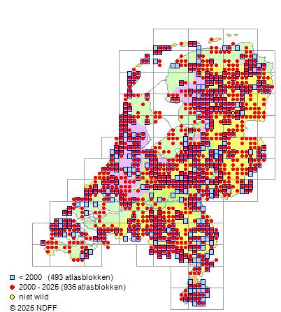 Bron: FLORON - Gemodelleerd op basis van waarnemingen uit de NDFF voor de periode 2000-2021.
