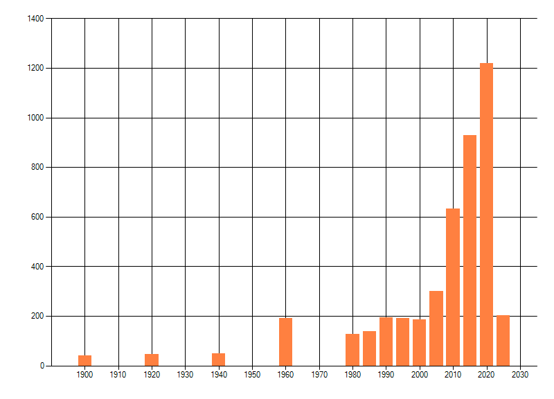Het aantal atlasblokken (5x5 km) waarin de soort is gemeld binnen een periode van vijf jaar (vanaf 1980) of twintig jaar. Niet gecorrigeerd voor waarnemersinspanning en het aantal doorgegeven waarnemingen kan sterk variëren per periode, dus een trend in verspreiding kan hier niet direct uit worden afgelezen. Het opgegeven jaartal is het eerste jaar van de periode. Bron: gevalideerde waarnemingen uit de NDFF.