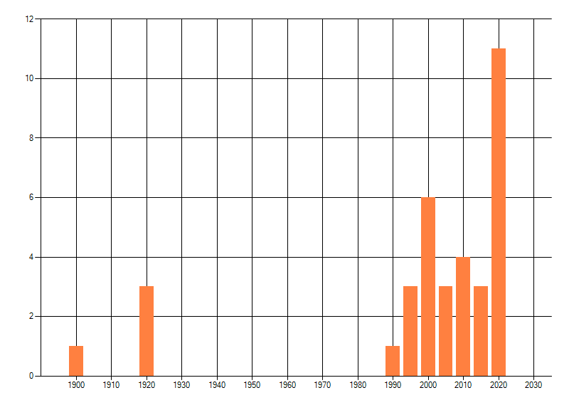 Het aantal atlasblokken (5x5 km) waarin de soort is gemeld binnen een periode van vijf jaar (vanaf 1980) of twintig jaar. Niet gecorrigeerd voor waarnemersinspanning en het aantal doorgegeven waarnemingen kan sterk variëren per periode, dus een trend in verspreiding kan hier niet direct uit worden afgelezen. Het opgegeven jaartal is het eerste jaar van de periode. Bron: gevalideerde waarnemingen uit de NDFF.