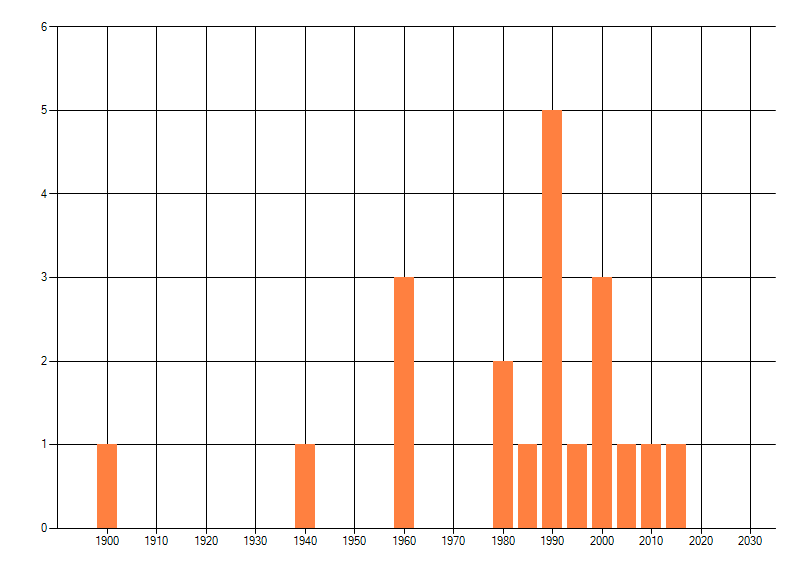 Het aantal atlasblokken (5x5 km) waarin de soort is gemeld binnen een periode van vijf jaar (vanaf 1980) of twintig jaar. Niet gecorrigeerd voor waarnemersinspanning en het aantal doorgegeven waarnemingen kan sterk variëren per periode, dus een trend in verspreiding kan hier niet direct uit worden afgelezen. Het opgegeven jaartal is het eerste jaar van de periode. Bron: gevalideerde waarnemingen uit de NDFF.