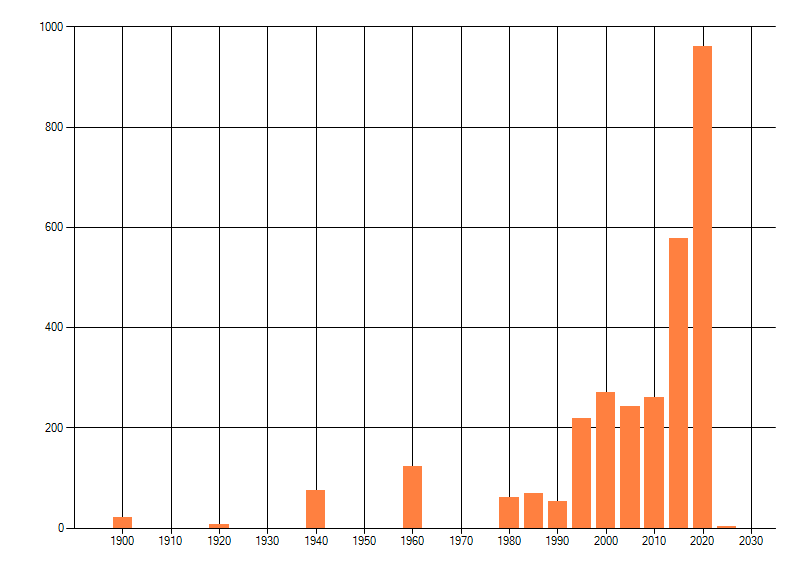 Het aantal atlasblokken (5x5 km) waarin de soort is gemeld binnen een periode van vijf jaar (vanaf 1980) of twintig jaar. Niet gecorrigeerd voor waarnemersinspanning en het aantal doorgegeven waarnemingen kan sterk variëren per periode, dus een trend in verspreiding kan hier niet direct uit worden afgelezen. Het opgegeven jaartal is het eerste jaar van de periode. Bron: gevalideerde waarnemingen uit de NDFF.