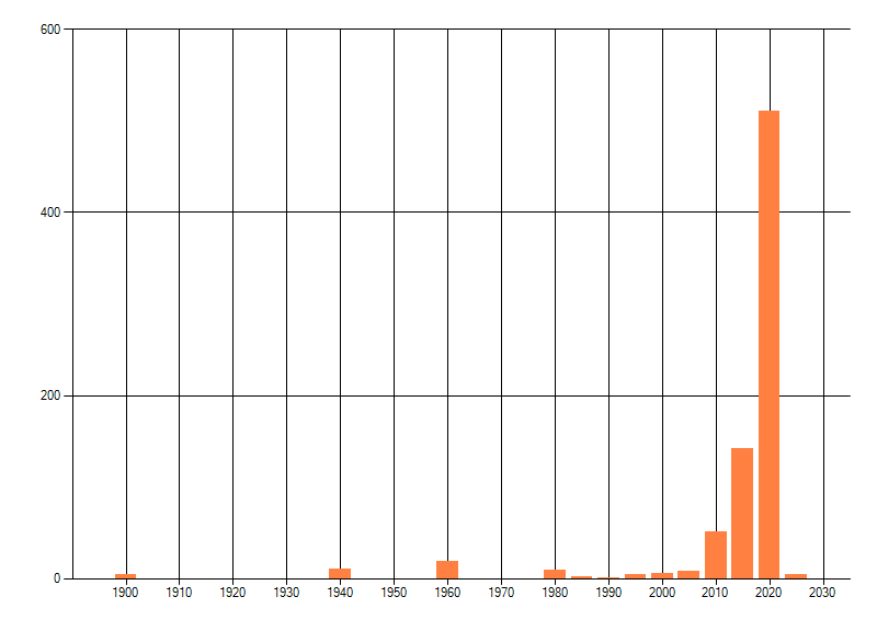 Het aantal atlasblokken (5x5 km) waarin de soort is gemeld binnen een periode van vijf jaar (vanaf 1980) of twintig jaar. Niet gecorrigeerd voor waarnemersinspanning en het aantal doorgegeven waarnemingen kan sterk variëren per periode, dus een trend in verspreiding kan hier niet direct uit worden afgelezen. Het opgegeven jaartal is het eerste jaar van de periode. Bron: gevalideerde waarnemingen uit de NDFF.