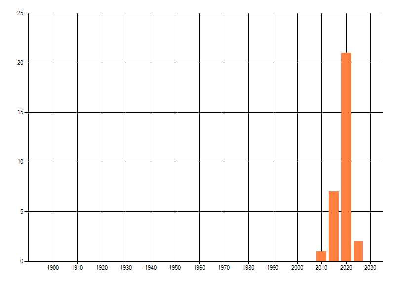 Het aantal atlasblokken (5x5 km) waarin de soort is gemeld binnen een periode van vijf jaar (vanaf 1980) of twintig jaar. Niet gecorrigeerd voor waarnemersinspanning en het aantal doorgegeven waarnemingen kan sterk variëren per periode, dus een trend in verspreiding kan hier niet direct uit worden afgelezen. Het opgegeven jaartal is het eerste jaar van de periode. Bron: gevalideerde waarnemingen uit de NDFF.