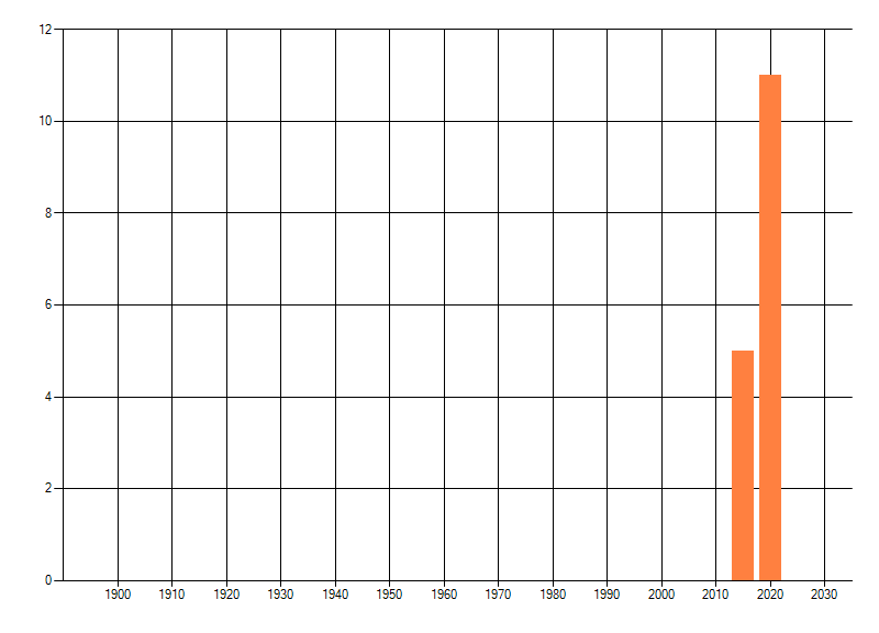 Het aantal atlasblokken (5x5 km) waarin de soort is gemeld binnen een periode van vijf jaar (vanaf 1980) of twintig jaar. Niet gecorrigeerd voor waarnemersinspanning en het aantal doorgegeven waarnemingen kan sterk variëren per periode, dus een trend in verspreiding kan hier niet direct uit worden afgelezen. Het opgegeven jaartal is het eerste jaar van de periode. Bron: gevalideerde waarnemingen uit de NDFF.