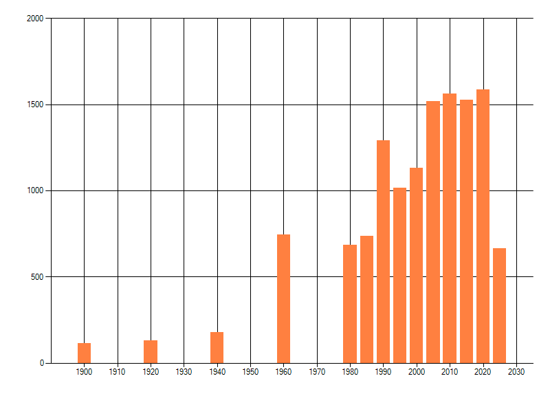 Het aantal atlasblokken (5x5 km) waarin de soort is gemeld binnen een periode van vijf jaar (vanaf 1980) of twintig jaar. Niet gecorrigeerd voor waarnemersinspanning en het aantal doorgegeven waarnemingen kan sterk variëren per periode, dus een trend in verspreiding kan hier niet direct uit worden afgelezen. Het opgegeven jaartal is het eerste jaar van de periode. Bron: gevalideerde waarnemingen uit de NDFF.