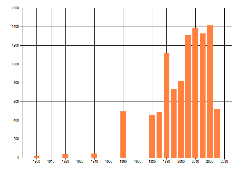 Het aantal atlasblokken (5x5 km) waarin de soort is gemeld binnen een periode van vijf jaar (vanaf 1980) of twintig jaar. Niet gecorrigeerd voor waarnemersinspanning en het aantal doorgegeven waarnemingen kan sterk variƫren per periode, dus een trend in verspreiding kan hier niet direct uit worden afgelezen. Het opgegeven jaartal is het eerste jaar van de periode. Bron: gevalideerde waarnemingen uit de NDFF.