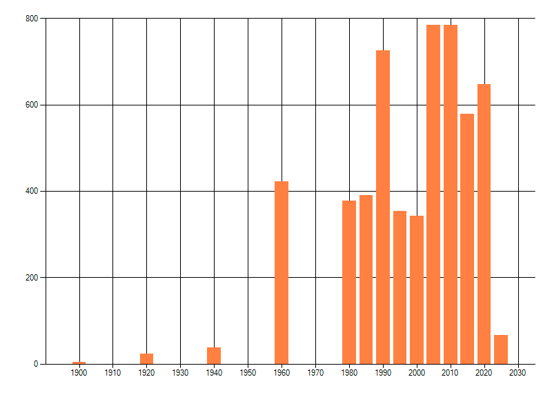 Het aantal atlasblokken (5x5 km) waarin de soort is gemeld binnen een periode van vijf jaar (vanaf 1980) of twintig jaar. Niet gecorrigeerd voor waarnemersinspanning en het aantal doorgegeven waarnemingen kan sterk variëren per periode, dus een trend in verspreiding kan hier niet direct uit worden afgelezen. Het opgegeven jaartal is het eerste jaar van de periode. Bron: gevalideerde waarnemingen uit de NDFF.