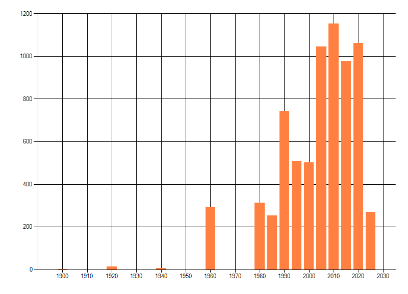 Het aantal atlasblokken (5x5 km) waarin de soort is gemeld binnen een periode van vijf jaar (vanaf 1980) of twintig jaar. Niet gecorrigeerd voor waarnemersinspanning en het aantal doorgegeven waarnemingen kan sterk variëren per periode, dus een trend in verspreiding kan hier niet direct uit worden afgelezen. Het opgegeven jaartal is het eerste jaar van de periode. Bron: gevalideerde waarnemingen uit de NDFF.