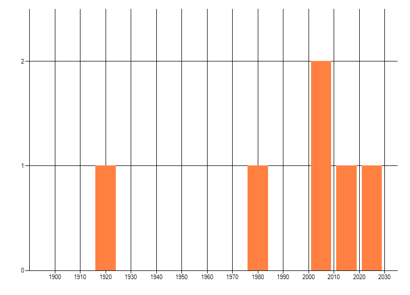 Het aantal atlasblokken (5x5 km) waarin de soort is gemeld binnen een periode van vijf jaar (vanaf 1980) of twintig jaar. Niet gecorrigeerd voor waarnemersinspanning en het aantal doorgegeven waarnemingen kan sterk variëren per periode, dus een trend in verspreiding kan hier niet direct uit worden afgelezen. Het opgegeven jaartal is het eerste jaar van de periode. Bron: gevalideerde waarnemingen uit de NDFF.