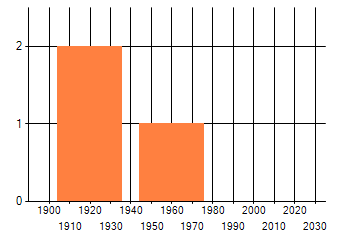 Het aantal atlasblokken (5x5 km) waarin de soort is gemeld binnen een periode van vijf jaar (vanaf 1980) of twintig jaar. Niet gecorrigeerd voor waarnemersinspanning en het aantal doorgegeven waarnemingen kan sterk variëren per periode, dus een trend in verspreiding kan hier niet direct uit worden afgelezen. Het opgegeven jaartal is het eerste jaar van de periode. Bron: gevalideerde waarnemingen uit de NDFF.