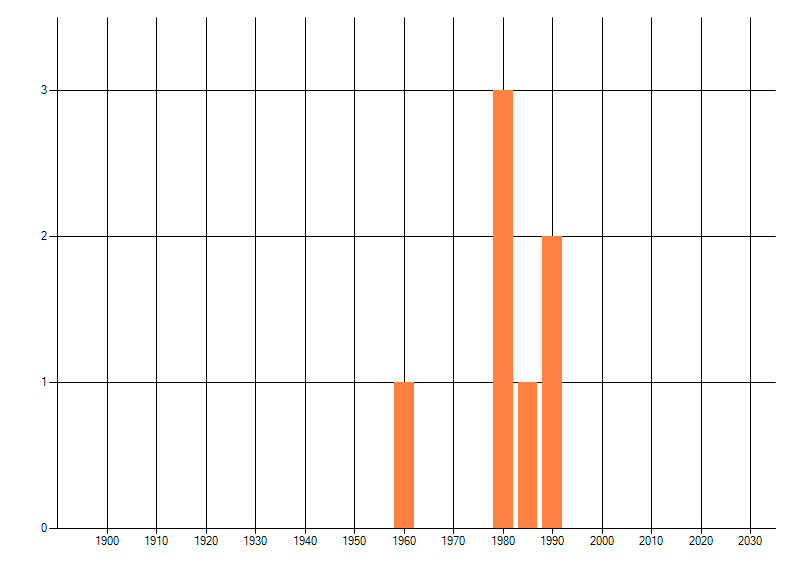 Het aantal atlasblokken (5x5 km) waarin de soort is gemeld binnen een periode van vijf jaar (vanaf 1980) of twintig jaar. Niet gecorrigeerd voor waarnemersinspanning en het aantal doorgegeven waarnemingen kan sterk variëren per periode, dus een trend in verspreiding kan hier niet direct uit worden afgelezen. Het opgegeven jaartal is het eerste jaar van de periode. Bron: gevalideerde waarnemingen uit de NDFF.