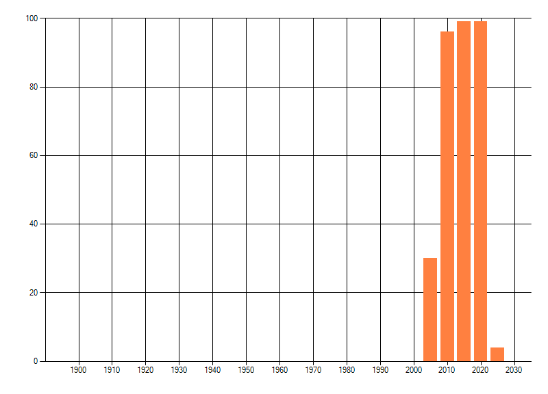 Het aantal atlasblokken (5x5 km) waarin de soort is gemeld binnen een periode van vijf jaar (vanaf 1980) of twintig jaar. Niet gecorrigeerd voor waarnemersinspanning en het aantal doorgegeven waarnemingen kan sterk variëren per periode, dus een trend in verspreiding kan hier niet direct uit worden afgelezen. Het opgegeven jaartal is het eerste jaar van de periode. Bron: gevalideerde waarnemingen uit de NDFF.
