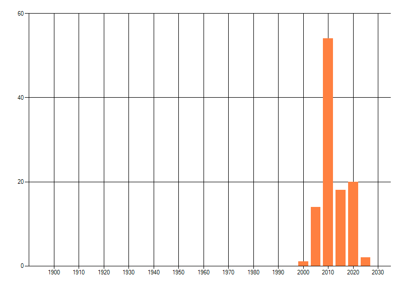 Het aantal atlasblokken (5x5 km) waarin de soort is gemeld binnen een periode van vijf jaar (vanaf 1980) of twintig jaar. Niet gecorrigeerd voor waarnemersinspanning en het aantal doorgegeven waarnemingen kan sterk variëren per periode, dus een trend in verspreiding kan hier niet direct uit worden afgelezen. Het opgegeven jaartal is het eerste jaar van de periode. Bron: gevalideerde waarnemingen uit de NDFF.
