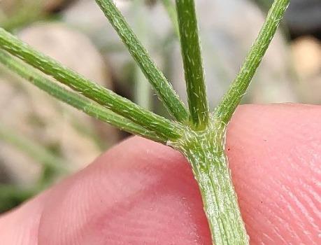 * het omwindsel is een krans van schutbladen aan de voet van de bloeischerm. Bij Torilis liggen de omwindselbladen vaak tegen de schermstralen aangedrukt waardoor ze lastig te zien zijn. Bekijk en fotografeer de aanwezigheid van omwindselbladen van onderen met een loep.