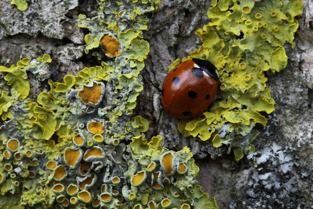 In de tuin op stam Bolcatalpa. Met lieveheersbeestje