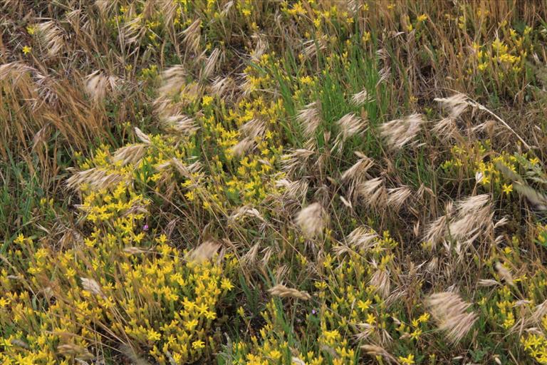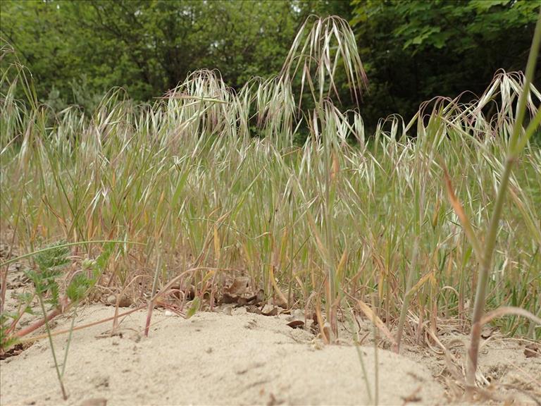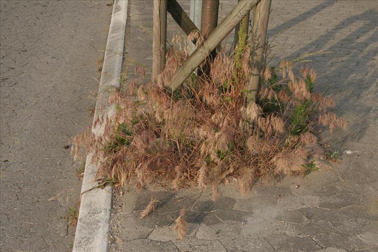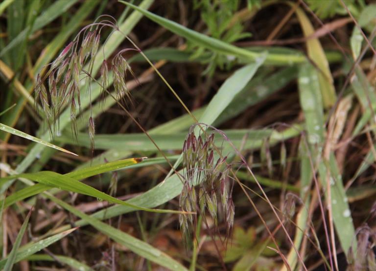 Bloemen - Tweeslachtig (een bloem met zowel mannelijke als vrouwelijke geslachtsorganen). De bloempluim is vrij dicht en kort en vrij sterk vertakt. De langste pluimtakken met drie tot acht aartjes. Alle aartjes hangen naar één kant. De aartjes zijn samen met de naalden 2½-3½ cm lang. De helmknoppen zijn hoogstens 1 mm lang. Het onderste kelkkafje heeft één nerf rm het bovenste drie nerven. Ze zijn 0,7 tot 1,1 cm lang.