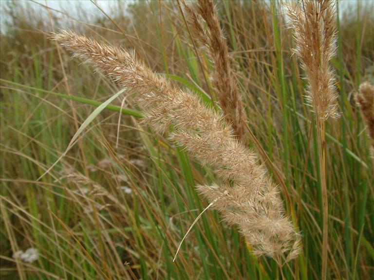 Bloemen - Tweeslachtig (een bloem met zowel mannelijke als vrouwelijke geslachtsorganen). De bloemen vormen een samengetrokken, rechtopstaande pluim, die tot 30 cm lang wordt. De aartjes groeien in kluwens. Aan de voet van het onderste kroonkafje zit een haarkrans. Alle kelkkafjes zijn ongeveer even lang (minstens 5 mm). Ze zijn smal langwerpig en zeer spits. Het onderste kroonkafje heeft een naald aan de rugkant, die veel langer is dan het kafje en bijna tot aan de top van de kelkkafjes komt, maar niet uit het aartje steekt. De niet kruisvormige helmknoppen zitten tijdens de bloei in het aartje verborgen.