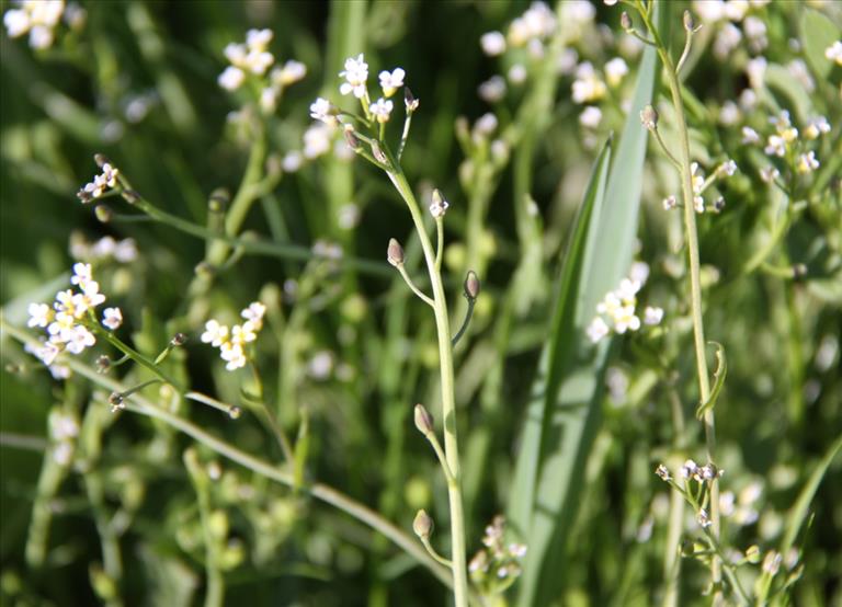 Bloemen - Tweeslachtig (een bloem met zowel mannelijke als vrouwelijke geslachtsorganen). De 2-5 mm grote bloemen zijn wit. De kroonbladen zijn verschillend van grootte.