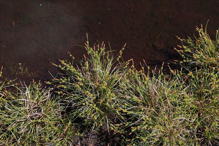 Stengels/takken - Vaak met vele stevige, stomp driekantige, meestal opstijgende stengels, die weinig of niet boven de bladeren uit komen. De onderste scheden zijn strokleurig tot beige en gaan vezelen. De soort groeit in dichte pollen.