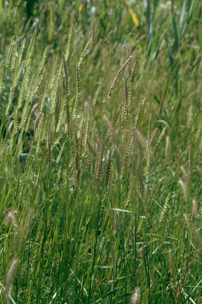 Bloemen - Tweeslachtig (een bloem met zowel mannelijke als vrouwelijke geslachtsorganen). De dichte bloempluim is lijnvormig (4-10 cm) met zeer korte zijassen. De hoofdas is zigzagsgewijs heen en weer gebogen en heeft twee rijen aartjeskluwens, die naar één kant van de hoofdas zijn gekeerd. De kelkkafjes zijn smal, gekield, grotendeels vliezig en hebben één nerf. Ze komen niet tot aan de top van het aartje. De vruchtbare aartjes hebben elk een onvruchtbaar kamvormig aartje aan de voet.